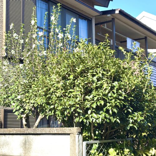 ムクゲはイイとしまして、キンモクセイとツバキは本当は今剪定するのは、花芽を切る事になってしまうので、花を少しでも多く楽しみたい、という方はNGです。