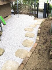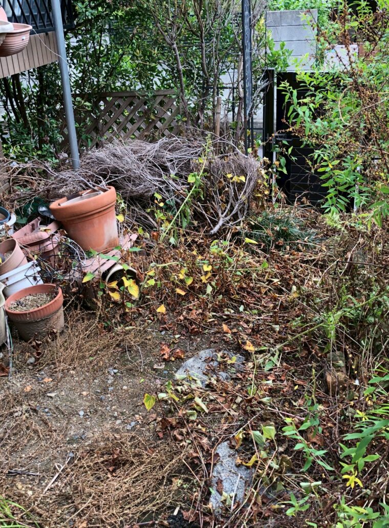 除草、植木鉢他処分、土すきとり、防草シート張り、砂利敷き